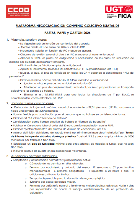 PLATAFORMA NEGOCIACIÓN CONVENIO COLECTIVO ESTATAL DE
