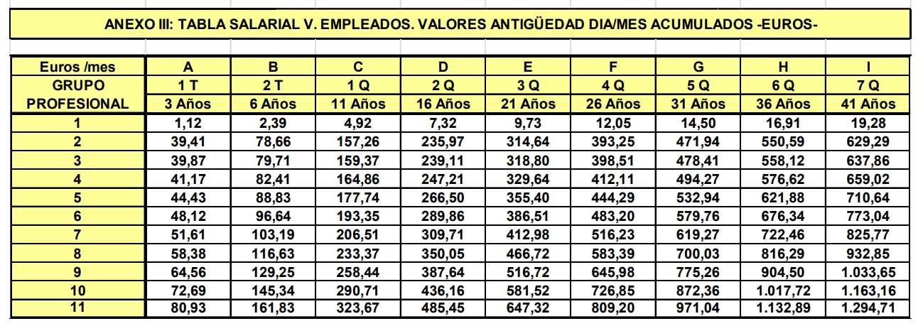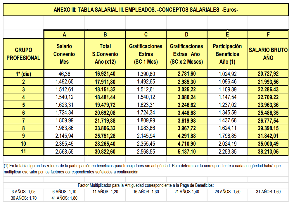 A falta de actualizar las tablas del Convenio Non Stop, a las cuales hay que aplicar la misma revisión, las tablas salariales del Convenio Estatal son las siguientes: